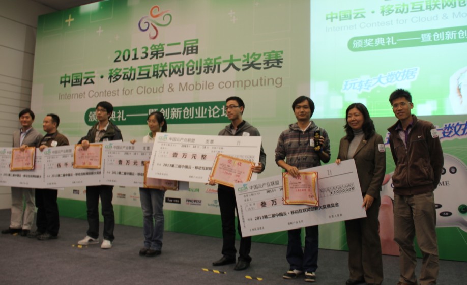 10月18日,中國(guó)云·移動(dòng)互聯(lián)網(wǎng)創(chuàng)新大獎(jiǎng)賽 2013(ICOME2013)--“玩轉(zhuǎn)大數(shù)據(jù)”頒獎(jiǎng)典禮在北京航空航天大學(xué)報(bào)告廳舉行,包括布谷云提醒、Bench4Q、WESEE、北航ACT隊(duì)、海馬、香港四方創(chuàng)意、HadoopVision等17支進(jìn)入復(fù)賽團(tuán)隊(duì)成員,中國(guó)云產(chǎn)業(yè)聯(lián)盟單位領(lǐng)導(dǎo)以及數(shù)十家主流媒體共同見(jiàn)證了這一時(shí)刻。最終,Ideastar、LCLL、rucasu、海馬、PDL@ NUDT 等參賽團(tuán)隊(duì)分別摘取了商業(yè)創(chuàng)新類(lèi)和人才技術(shù)類(lèi)大獎(jiǎng)。
