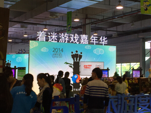 在本次博覽會(huì)期間,著迷展區(qū)以360度全方位液晶屏組成,全天候播放著迷制作的精品游戲視頻。