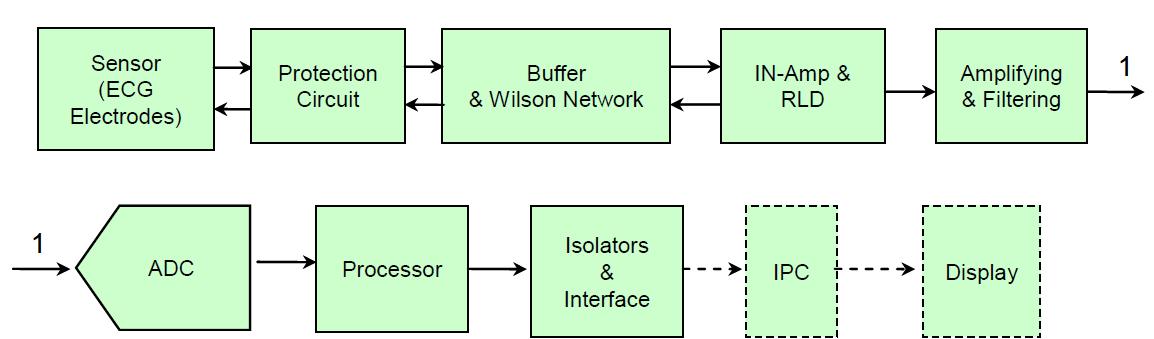 圖1是 ECG 設(shè)計的一個單導(dǎo)聯(lián) ECG 系統(tǒng)簡化系統(tǒng)功能框圖。如果采用分立器件實(shí)現(xiàn) ECG 設(shè)計,在模擬前端部分,每個導(dǎo)聯(lián)都需要實(shí)現(xiàn)圖中保護(hù)電路、緩沖、放大及濾波、ADC 等功能電路模塊。工程師獨(dú)立完成該系統(tǒng)設(shè)計將是一個極具挑戰(zhàn)性的工作:首先,分立器件的選擇需要參考眾多的性能指標(biāo),包括濾采樣速率、帶寬、噪聲,等等;為使 ECG 測量輸出信息可用,必須保證通道之間的一致性;前端信號調(diào)理電路與 ADC 之間的匹配;眾多的調(diào)試點(diǎn),調(diào)試工作量巨大……事實(shí)上,除了圖中所示的基本功能模塊外,用戶的設(shè)計工作可能還包括:構(gòu)建 RFI 濾波器以減少諸如手機(jī)、廣播等的無線干擾;選擇合適的阻容器件設(shè)定恰當(dāng)?shù)臑V波頻率;對敏感器件增加靜電屏蔽罩以避免 ESD 干擾,使產(chǎn)品滿足 IEC 相關(guān)標(biāo)準(zhǔn)要求。