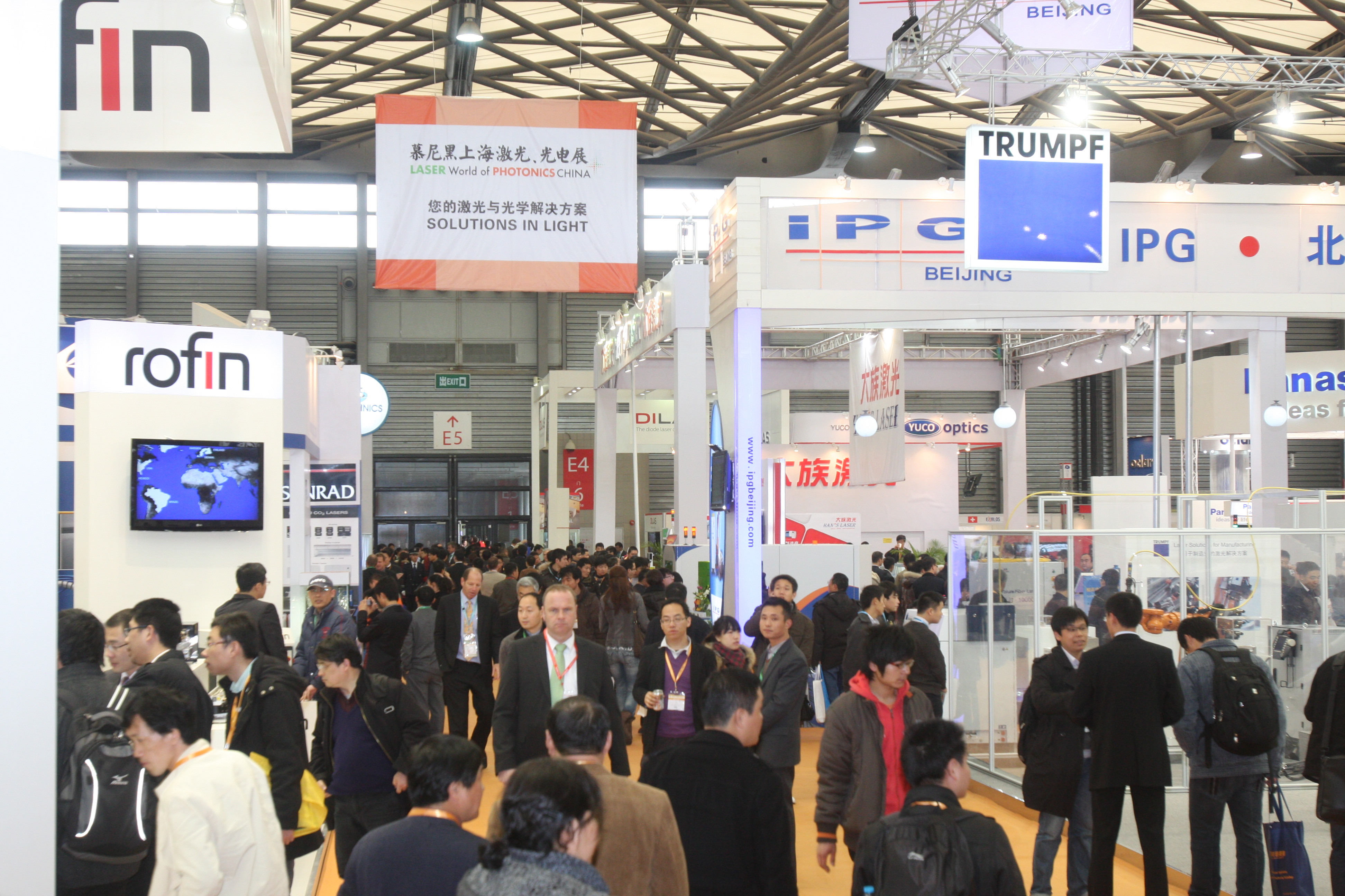 此次展會(huì)全面覆蓋 E3、E4 兩大展館,囊括行業(yè)頂尖企業(yè),包括生產(chǎn)工程(激光加工設(shè)備)專區(qū)的通快集團(tuán)、德商羅芬、大族激光、GSI、鐳射沃、楚天激光、華工激光、燦爛陽光、新松、薩瓦尼尼、徠斯、法利萊、松下、史陶比爾;激光器和光導(dǎo)發(fā)光元件專區(qū)的相干、IPG、理波;光學(xué)與光學(xué)制造專區(qū)的海洋光學(xué)、愛萬提斯、必達(dá)泰克、II-VI、愛特蒙特、舜宇、永新、Hellma;測試測量專區(qū)的普愛納米、卓立漢光;機(jī)器視覺專區(qū)的凌云、大亨圖像、微視;光信息與通信專區(qū)的 LEONI、JDSU、長飛、易飛揚(yáng)、高意、Oclaro、Nufern等。此外,德國、法國、日本等國家也組織了大規(guī)模的國家展團(tuán)。