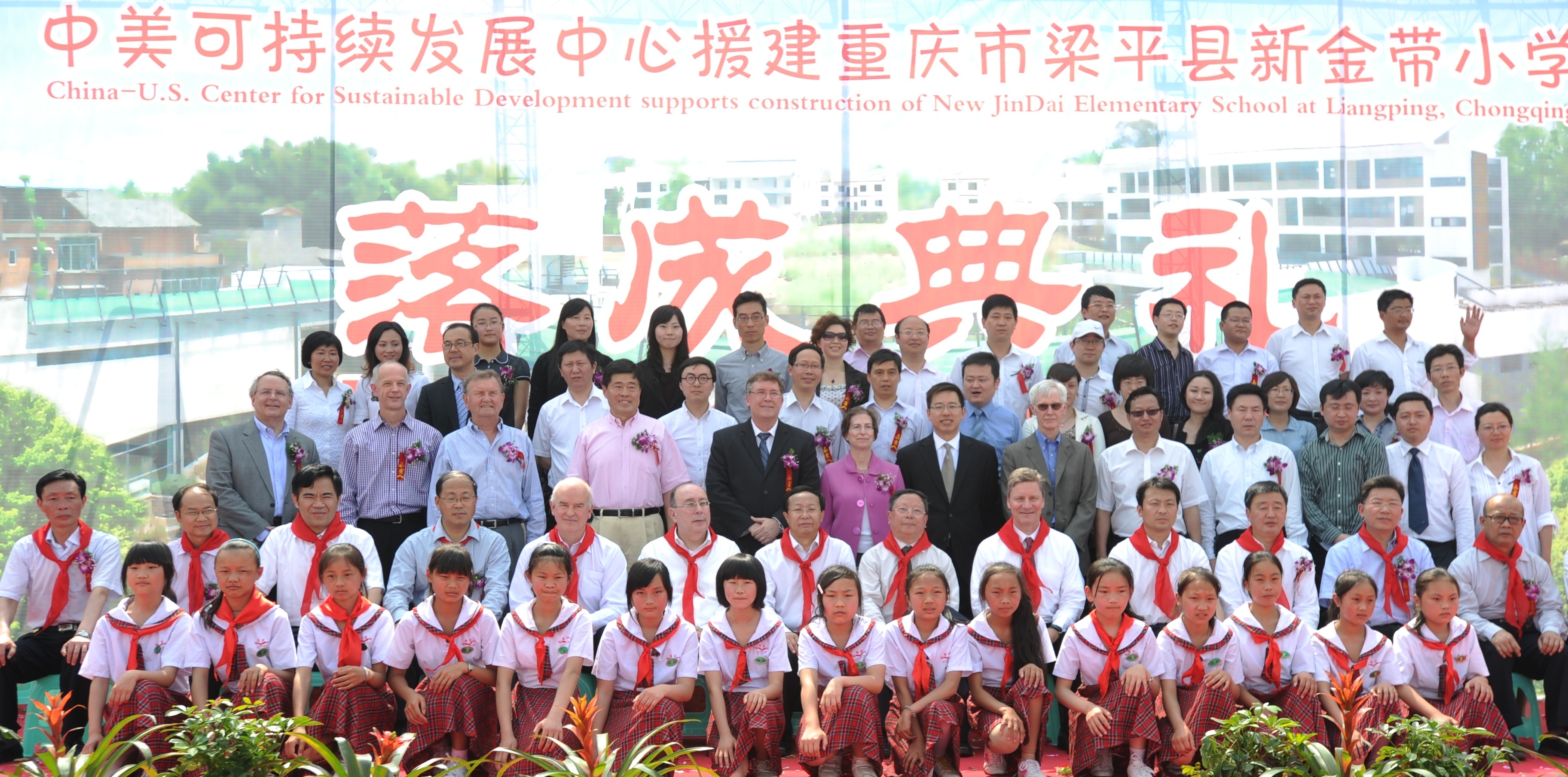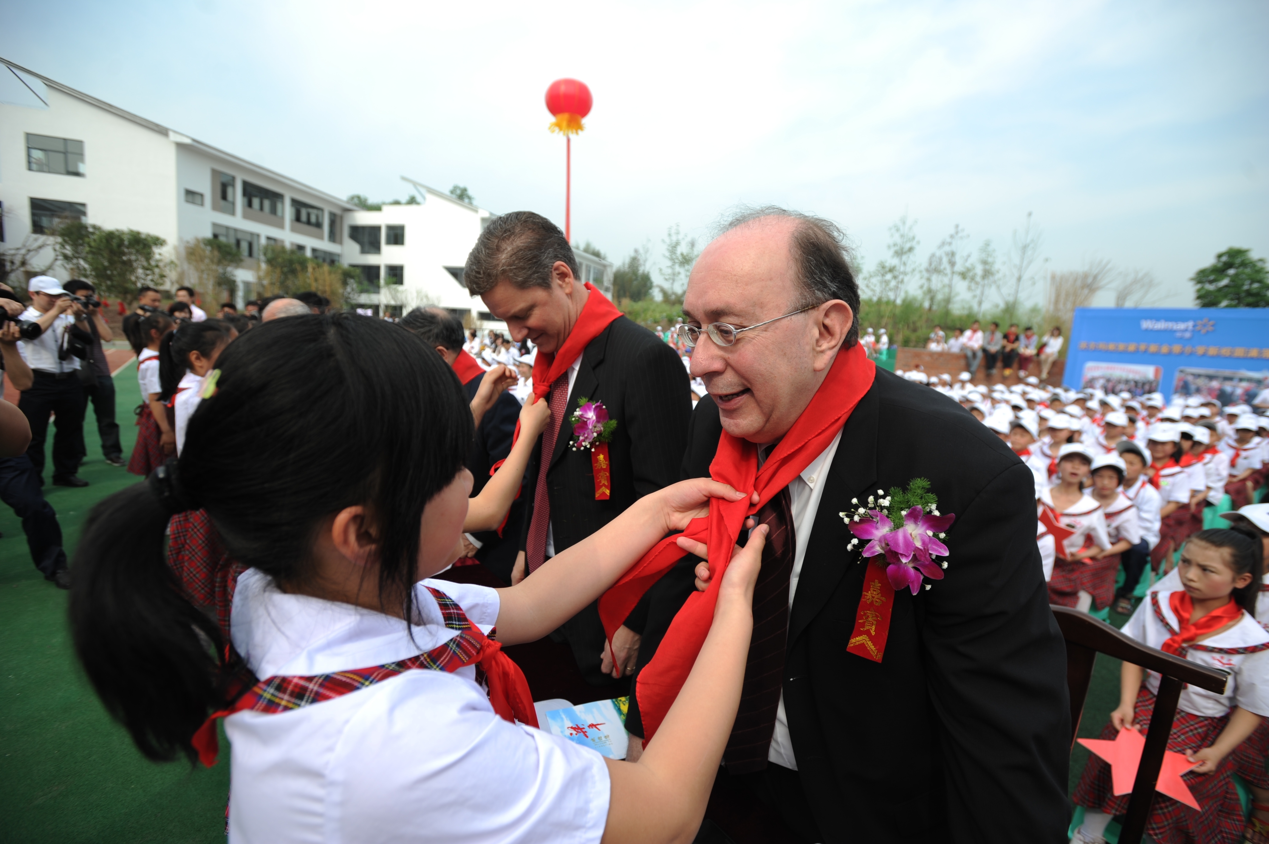 中美可持續(xù)發(fā)展中心美方理事會主席 Gary Dirks、中國21世紀(jì)議程管理中心主任郭日生、中國宋慶齡基金會基金部副部長李曉峰、中華環(huán)保基金會秘書長李偉、沃爾瑪中國公司事務(wù)副總裁傅希孟(Barry Friedman)、沃爾瑪全球采購副總裁藍(lán)柯(Ken Lanshe)、沃爾瑪公司國際部可持續(xù)發(fā)展高級總監(jiān)柯培新(Beth Keck)等嘉賓及數(shù)十名來自沃爾瑪重慶各商場的員工代表出席了新校園落成儀式。沃爾瑪還向新金帶小學(xué)捐贈了師生急需的電腦等價值萬元的學(xué)習(xí)及體育用品。