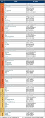 該全球外包100強名單旨在幫助各公司使用客觀法比較并挑選服務(wù)供應(yīng)商。供應(yīng)商的排名是通過一項對18項標準進行考核的嚴格評選應(yīng)用程序得出的。最終排名的依據(jù)是各公司在公認能力、規(guī)模、發(fā)展、管理能力和客戶推薦方面的加權(quán)平均得分。