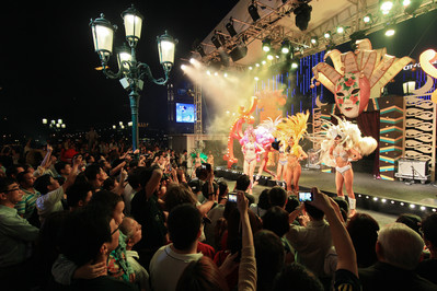 翌日,全球桑巴舞大賽冠軍Beija-Flor更作出巴西里約熱內(nèi)盧嘉年華巡游表演,沿途經(jīng)商場(chǎng)、娛樂(lè)場(chǎng)至澳門(mén)威尼斯人戶(hù)外,受到眾多游人和賓客的歡呼和喝彩。