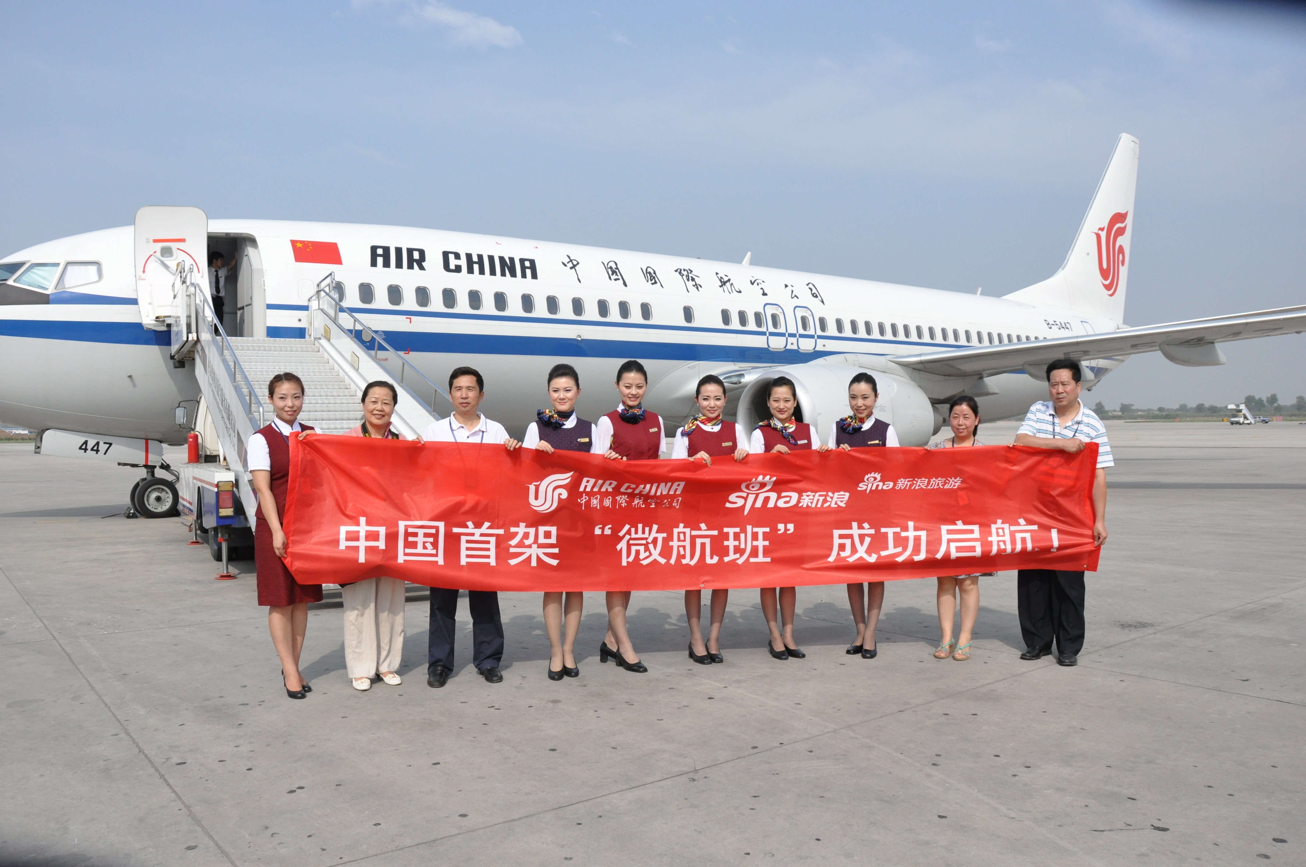 “微航班”也叫“微博航班”,是中國國際航空公司與新浪協(xié)作專門面向微博網(wǎng)友開通的以“我的航班我做主”為主題的專屬航班。該航班由國內(nèi)首架具有天空內(nèi)飾的波音737-800飛機(jī)執(zhí)飛,航程為北京-西安,機(jī)票價(jià)格僅為航線票價(jià)的4.8折暨490元(不含稅費(fèi)),開行時(shí)間為2011年7月1日早上06:50。
