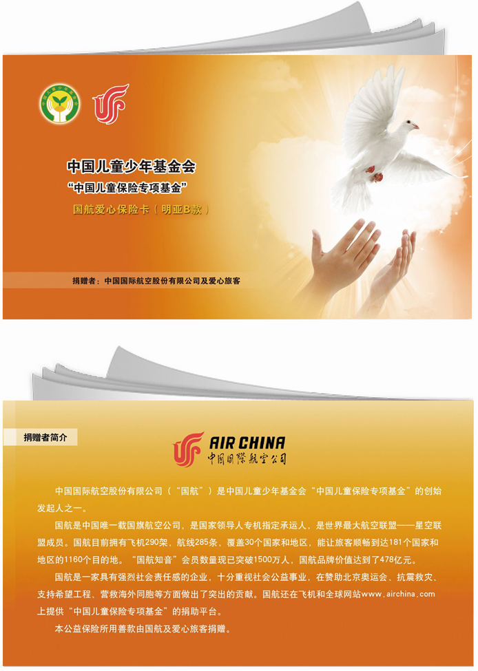 北京2011年8月31日電 /美通社亞洲/ -- 9月1日是新學(xué)年開(kāi)學(xué)之際,四萬(wàn)多名四川孤兒再獲中國(guó)兒童少年基金會(huì)中國(guó)兒童保險(xiǎn)專項(xiàng)基金贈(zèng)送的重大疾病公益保險(xiǎn)。中國(guó)國(guó)航及其愛(ài)心旅客為本次捐贈(zèng)提供了103萬(wàn)元善款,覆蓋四川涼山、達(dá)州、巴中、廣安等地的兩萬(wàn)多名孤兒。其中,由國(guó)航愛(ài)心旅客捐贈(zèng)的53萬(wàn)元善款是自去年九月至今通過(guò)國(guó)航機(jī)上及網(wǎng)上捐贈(zèng)平臺(tái)募集的。其它善款主要來(lái)自如新集團(tuán)、數(shù)萬(wàn)名支付寶愛(ài)心網(wǎng)友及其他愛(ài)心人士的慷慨捐贈(zèng)。