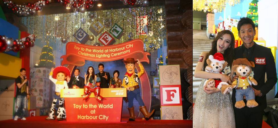 海港城與香港迪士尼樂(lè)園將一同活出想象,把海港城海運(yùn)大廈露天廣場(chǎng)幻化成以“玩具總動(dòng)員”為主題的圣誕布置,4米高的“胡迪”、3米高的“翠絲”及“抱抱龍”置于50米長(zhǎng)色彩繽紛的巨型積木之中,與“綠色小人”、“紅心”、豬仔錢罌“火腿”、“彈弓狗”和“玩具兵團(tuán)”跟大家一同歡度非一般的反斗圣誕。海港城于2011年11月8日在海港城海運(yùn)大廈露天廣場(chǎng)舉行《反斗圣誕總動(dòng)員@海港城》圣誕亮燈儀式,請(qǐng)來(lái)著名藝人夫婦陳建州(黑人)及范瑋琪(范范)作亮燈嘉賓,他們亦是首對(duì)以夫妻檔形式擔(dān)任這個(gè)全城期待的圣誕亮燈儀式的嘉賓,這也是他倆新婚燕爾的第一個(gè)圣誕來(lái)到香港度過(guò)這個(gè)浪漫佳節(jié),為歡欣圣誕展開序幕。