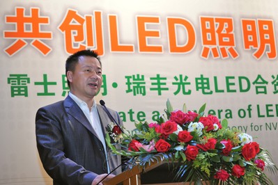 雷士照明董事長吳長江與瑞豐光電董事長龔偉斌在簽約儀式上均向媒體表示,雙方在LED項目上的合作,可全面推動各自在半導體照明領域的業(yè)務發(fā)展,并發(fā)揮各自擁有的互補資源和優(yōu)勢,加強雙方在LED領域的市場拓展。