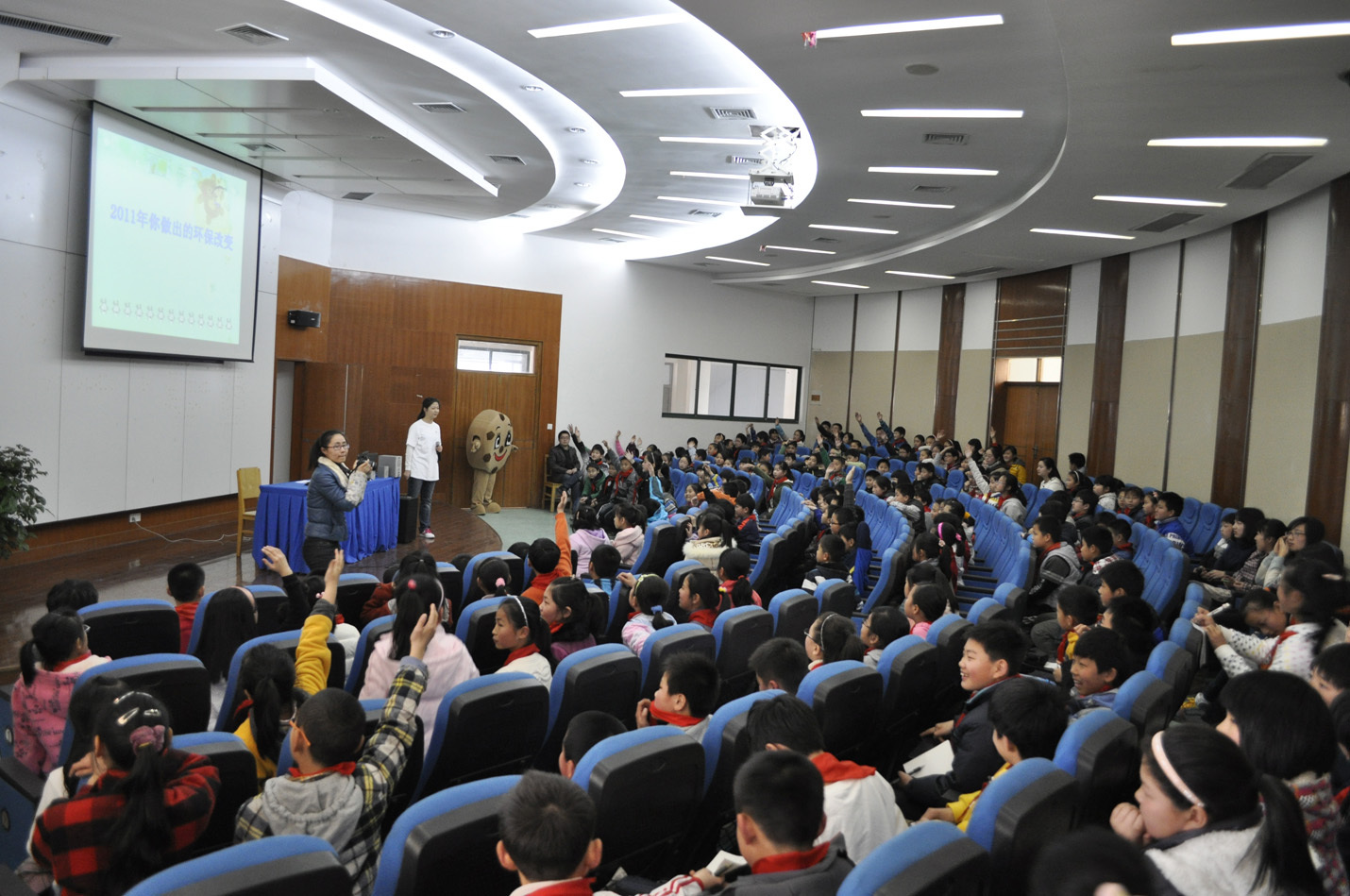 無錫2012年3月27日電 /美通社亞洲/ -- 2012年3月26日,和去年一樣,無錫新區(qū)希爾頓逸林酒店把環(huán)保活動帶到了無錫外國語學(xué)校新區(qū)小學(xué)部。通過社會大課堂的形式,酒店關(guān)愛委員會的Ms.CARE、餅干超人和無錫外國語學(xué)校新區(qū)小學(xué)部的同學(xué)們共同學(xué)習(xí)以低碳為主題的環(huán)保知識,并號召大家從日常的生活做起,成為一個小環(huán)保家。整個活動共有六個班級,約200名同學(xué)參加。活動結(jié)束后,酒店贈給每個班級一盆幸福樹,并號召所有的同學(xué)們都許下承諾來愛惜和照顧好幸福樹,養(yǎng)成保護植物的好習(xí)慣,同時在學(xué)習(xí)后觀看綠色植物緩解視力疲勞。
