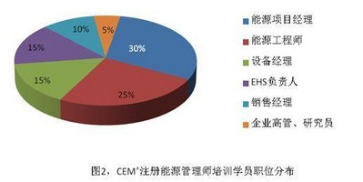 CEM®培訓學員來自大型用能企業(yè)、節(jié)能咨詢服務公司、節(jié)能設備生產(chǎn)商以及政府和公共研究機構,全面覆蓋到國內(nèi)能源管理的相關領域。該課程對企業(yè),政府和公共事業(yè)單位的能源相關人員,能源管理人員和較高決策層都有廣泛的適用性,使得能源用戶能夠上下協(xié)調(diào)一致,以較大水平提高能效和鞏固節(jié)能效果。在歷屆SGS開辦的CEM培訓班中我們發(fā)現(xiàn),學員不僅包括能源項目及設備相關管理人員,也不乏企業(yè)高管、銷售人員和研究員,如下圖2所示。