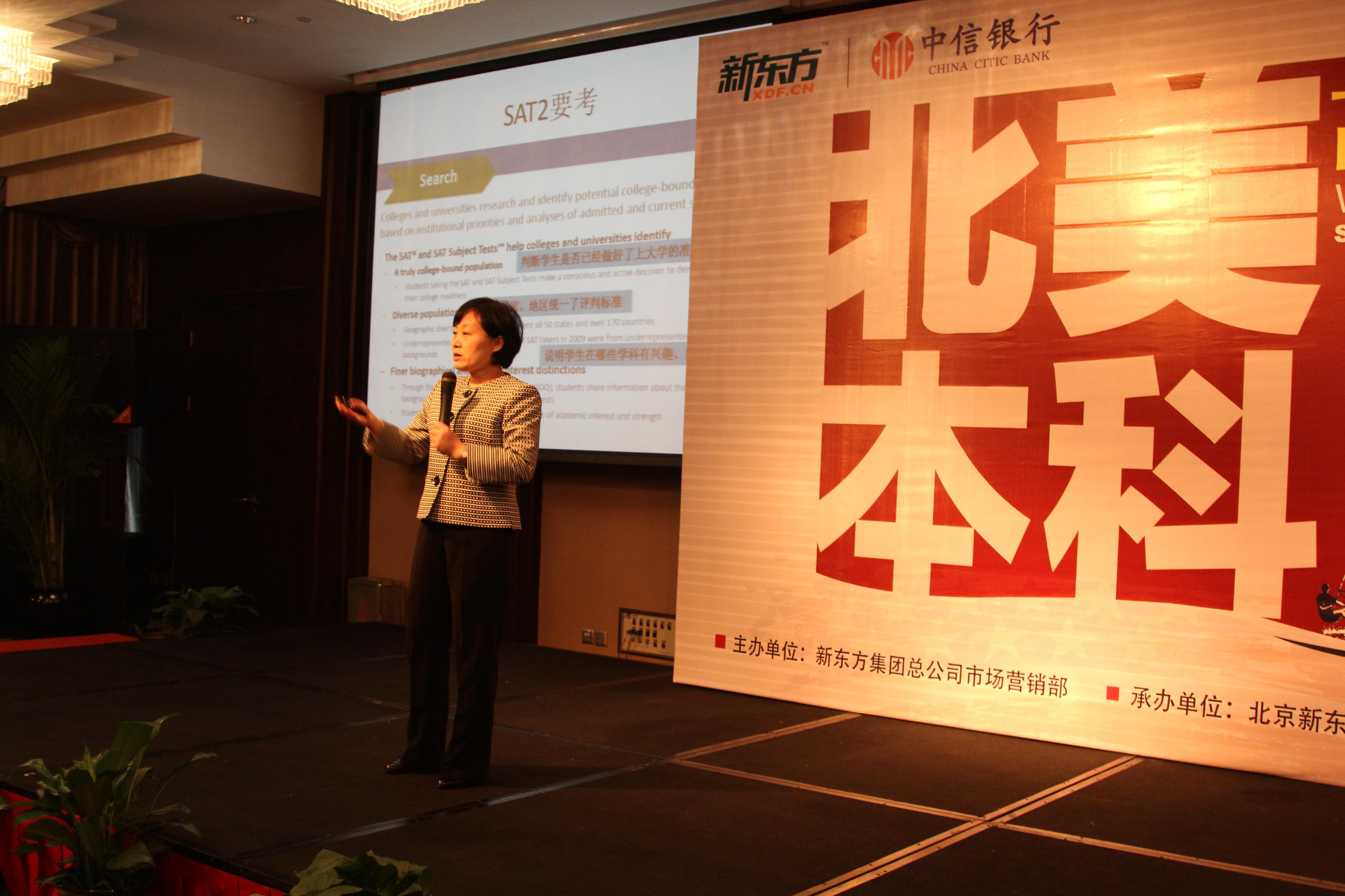 北京新東方SAT名師蔡瑞老師也在活動(dòng)現(xiàn)場(chǎng)為大家分享了赴美讀本科的規(guī)劃經(jīng)驗(yàn)。先考托福還是先考SAT?對(duì)很多家長(zhǎng)與學(xué)生的困惑,蔡瑞老師給出了自己的答案。“如果孩子的時(shí)間比較充裕,那么建議循序漸進(jìn),先托福后SAT 。而從另外一個(gè)維度來(lái)講,SAT考試不涉及聽(tīng)力口語(yǔ),孩子也可以先考自己擅長(zhǎng)的,給自己一個(gè)正反饋,才能對(duì)出國(guó)的道路有信心。”蔡瑞老師建議,她還介紹了托福、SAT、AP各項(xiàng)考試的考試時(shí)間以及對(duì)于各項(xiàng)考試的備考規(guī)劃規(guī)劃。