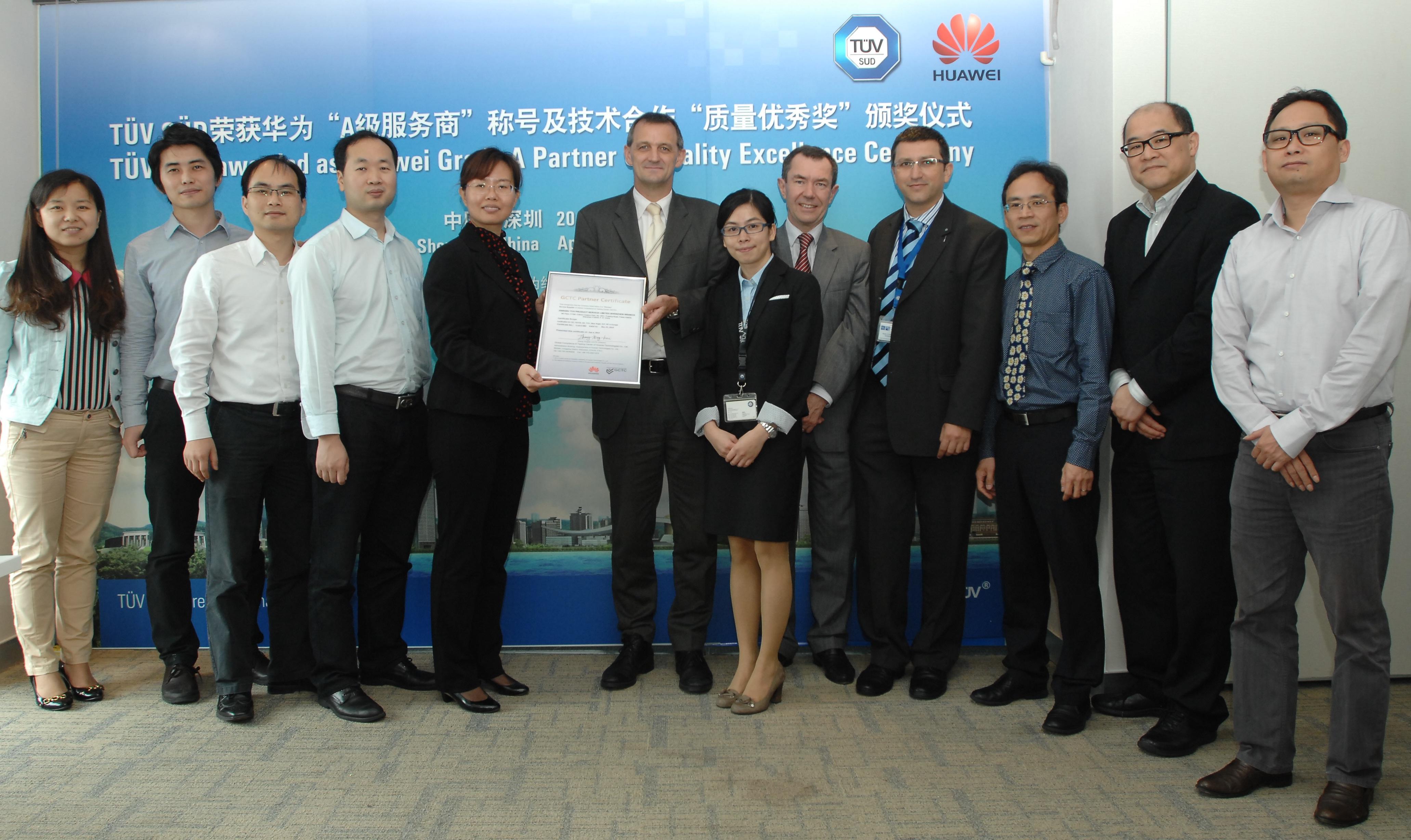 2013年4月22日, TUV SUD 憑借專業(yè)的技術(shù)合作能力和優(yōu)質(zhì)的客戶服務(wù)榮獲華為技術(shù)有限公司全球認(rèn)證檢測(cè)中心A級(jí)服務(wù)商,以及華為終端有限公司技術(shù)合作質(zhì)量?jī)?yōu)秀獎(jiǎng)。