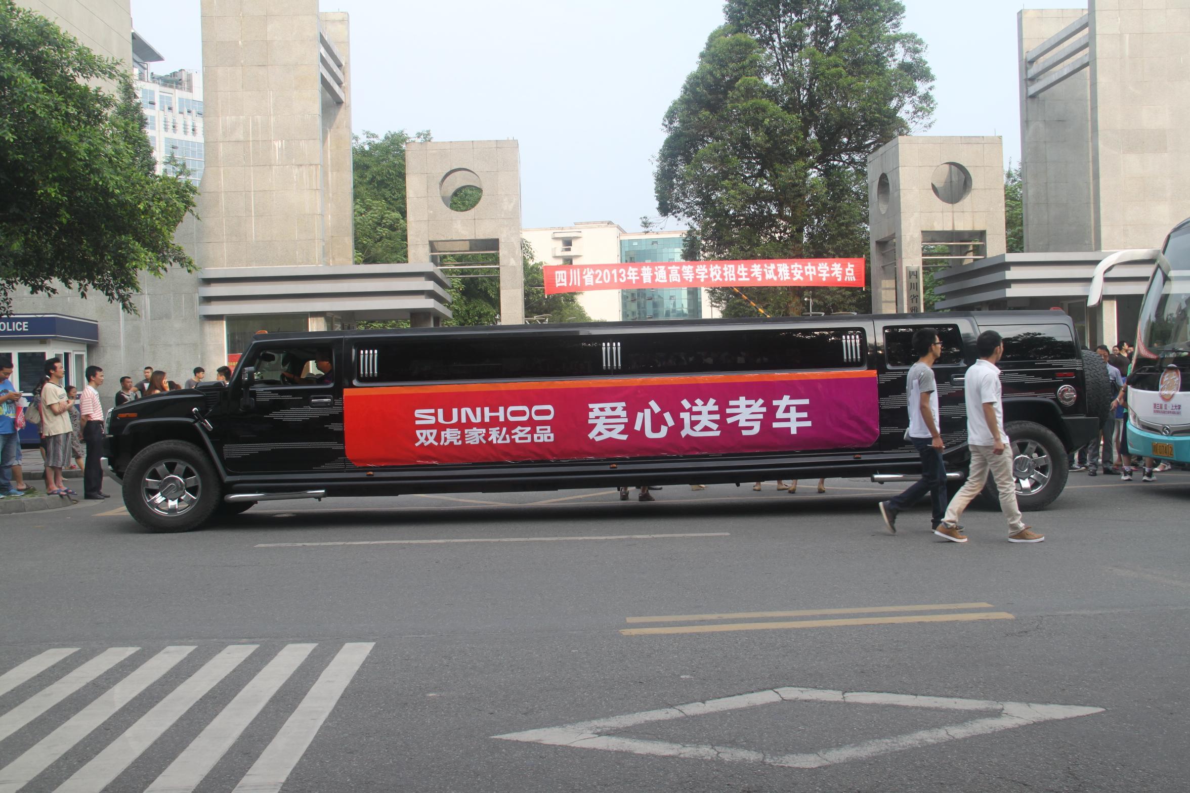 雅安的考生更是牽動(dòng)著每一個(gè)人的心,本次雅安地區(qū)愛心送考,愛心送考車隊(duì)由加長悍馬、凱迪拉克、大巴車等近20輛車組成。為預(yù)防高考意外情況的發(fā)生,雙虎家私在考場外特設(shè)置了“愛心加油站”,為考生提供2B鉛筆、簽字筆、太陽傘、坐凳、礦泉水、防暑藥品等,更設(shè)有家長等待休息區(qū)。