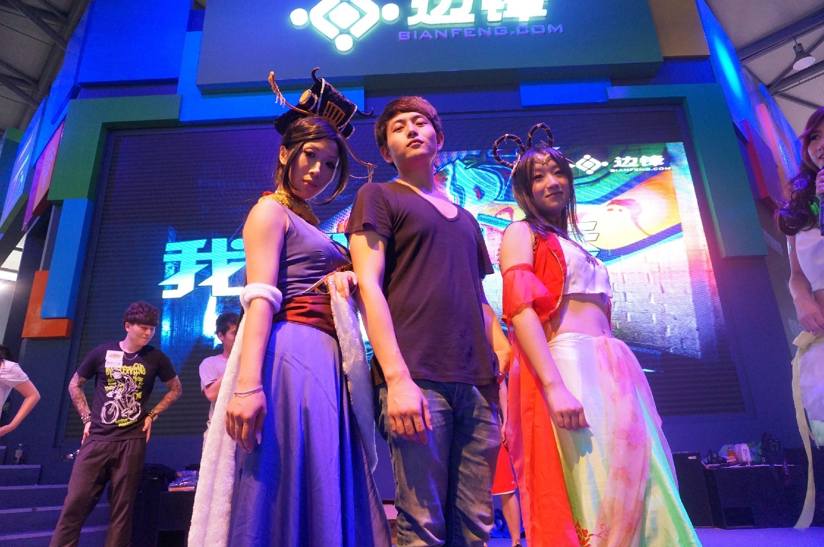 伴隨著動感 MV、甄姬和貂蟬 coser 示范了充滿古風(fēng)的舞蹈,拉動男玩家一起 high 翻全場,有的男玩家與 SG 跳的默契,貼身熱舞引得全場驚呼,有的男玩家也跳出了自己的風(fēng)采,賣萌的動作引得全場捧腹大笑。
