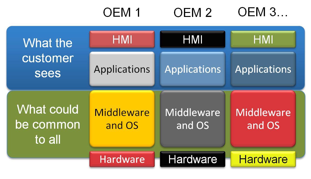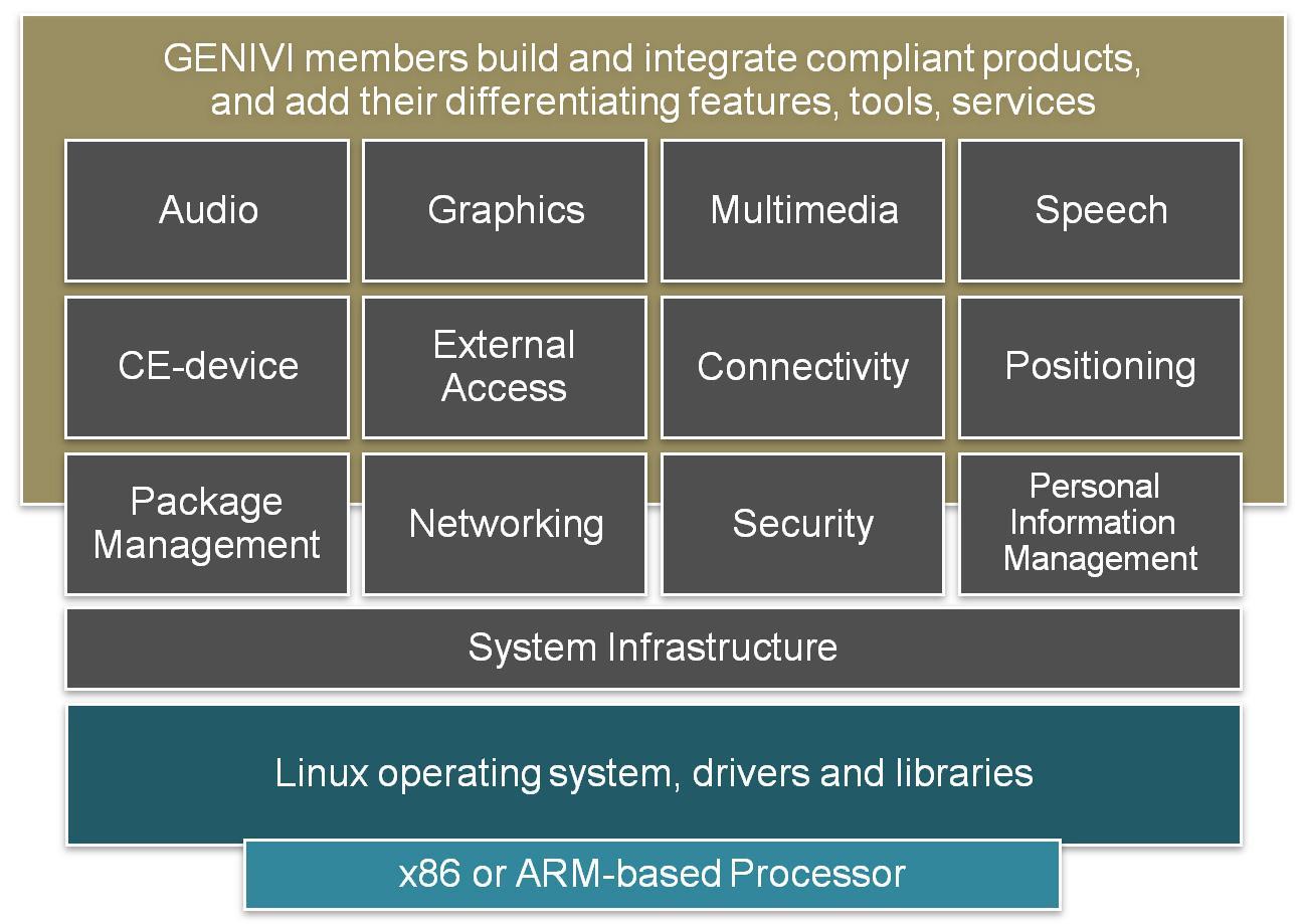 基于以上原因,非營利 GENIVI 聯(lián)盟在四年前成立。GENIVI 聯(lián)盟的成員現(xiàn)在包括170多家汽車生產(chǎn)商和供應商,其宗旨是共享一個標準的車載信息娛樂系統(tǒng)開發(fā)的開源平臺。