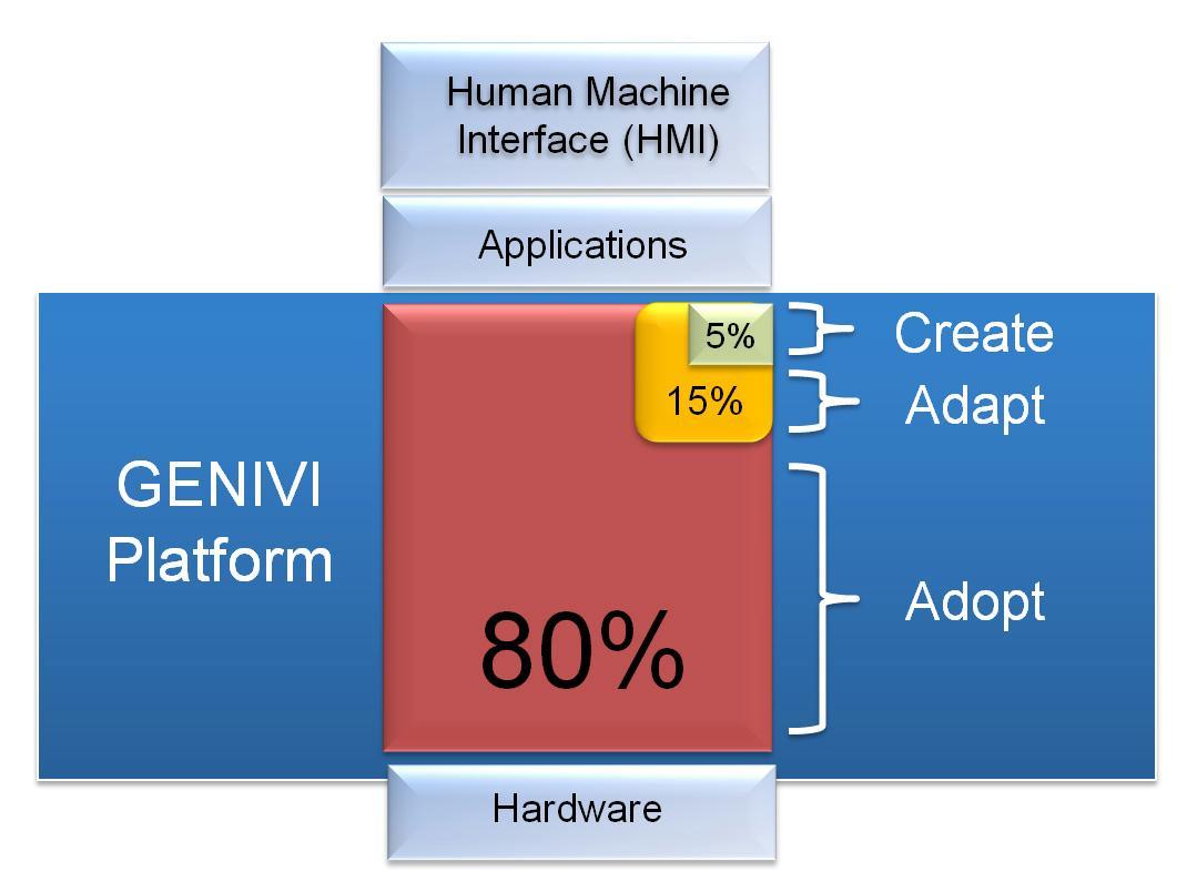 GENIVI 規(guī)范剩余5%的代碼對于車載信息娛樂系統(tǒng)而言非常獨特,現(xiàn)在還沒有這樣的開源項目存在。