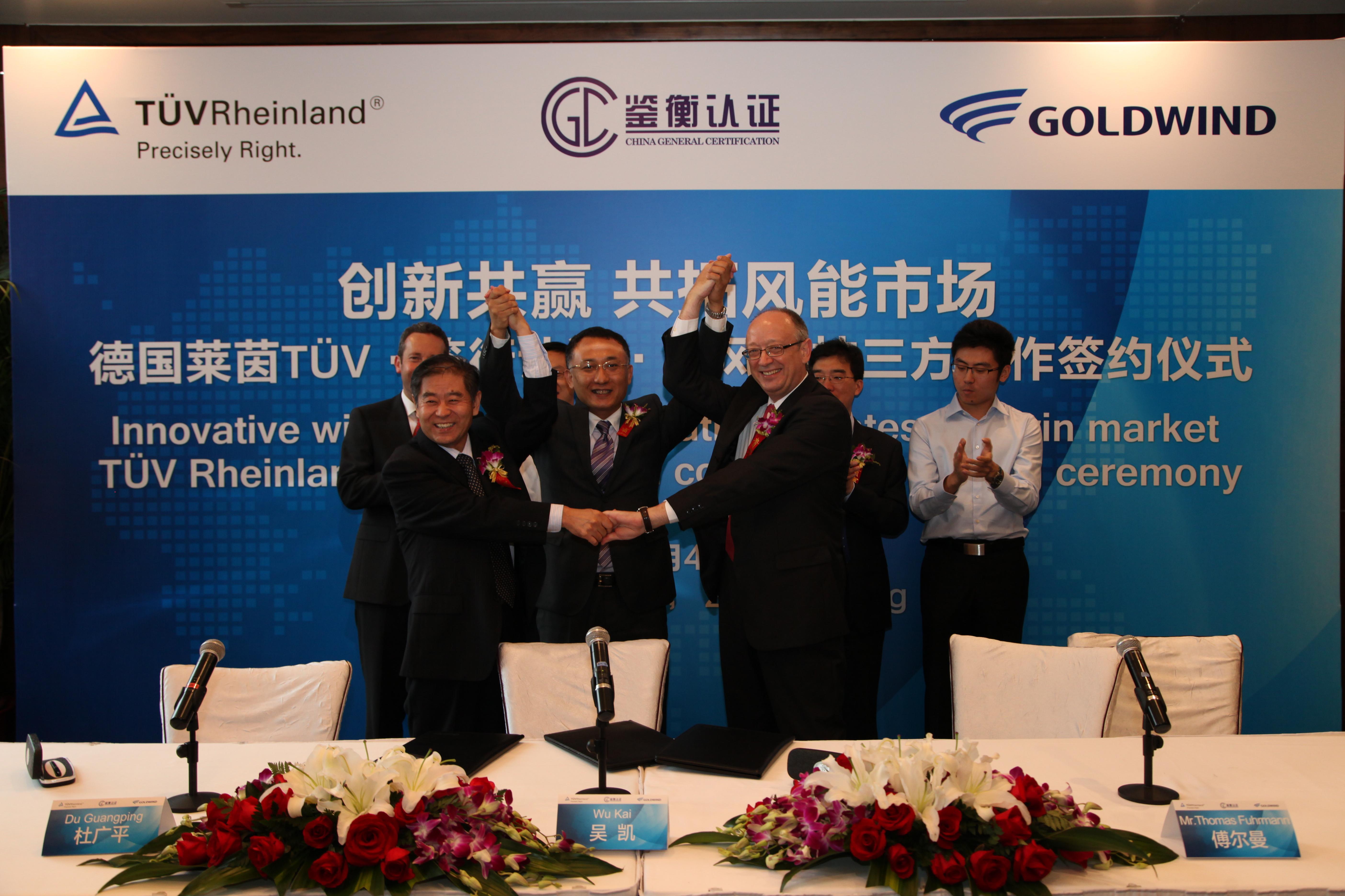 北京2013年9月5日電 /美通社/ -- 2013年9月4日,德國(guó)萊茵TUV集團(tuán)(以下簡(jiǎn)稱“萊茵TUV”)牽手北京鑒衡認(rèn)證中心(以下簡(jiǎn)稱“鑒衡認(rèn)證”)與新疆金風(fēng)科技股份有限公司(以下簡(jiǎn)稱“金風(fēng)科技”)在京共同簽署風(fēng)電機(jī)組認(rèn)證委托協(xié)議。國(guó)家可再生能源中心主任助理趙勇強(qiáng)、德國(guó)萊茵TUV工業(yè)服務(wù)全球總裁韓伯格、鑒衡認(rèn)證中心主任秦海巖、金風(fēng)科技副總裁、研發(fā)業(yè)務(wù)單元總經(jīng)理吳凱等出席簽字儀式。