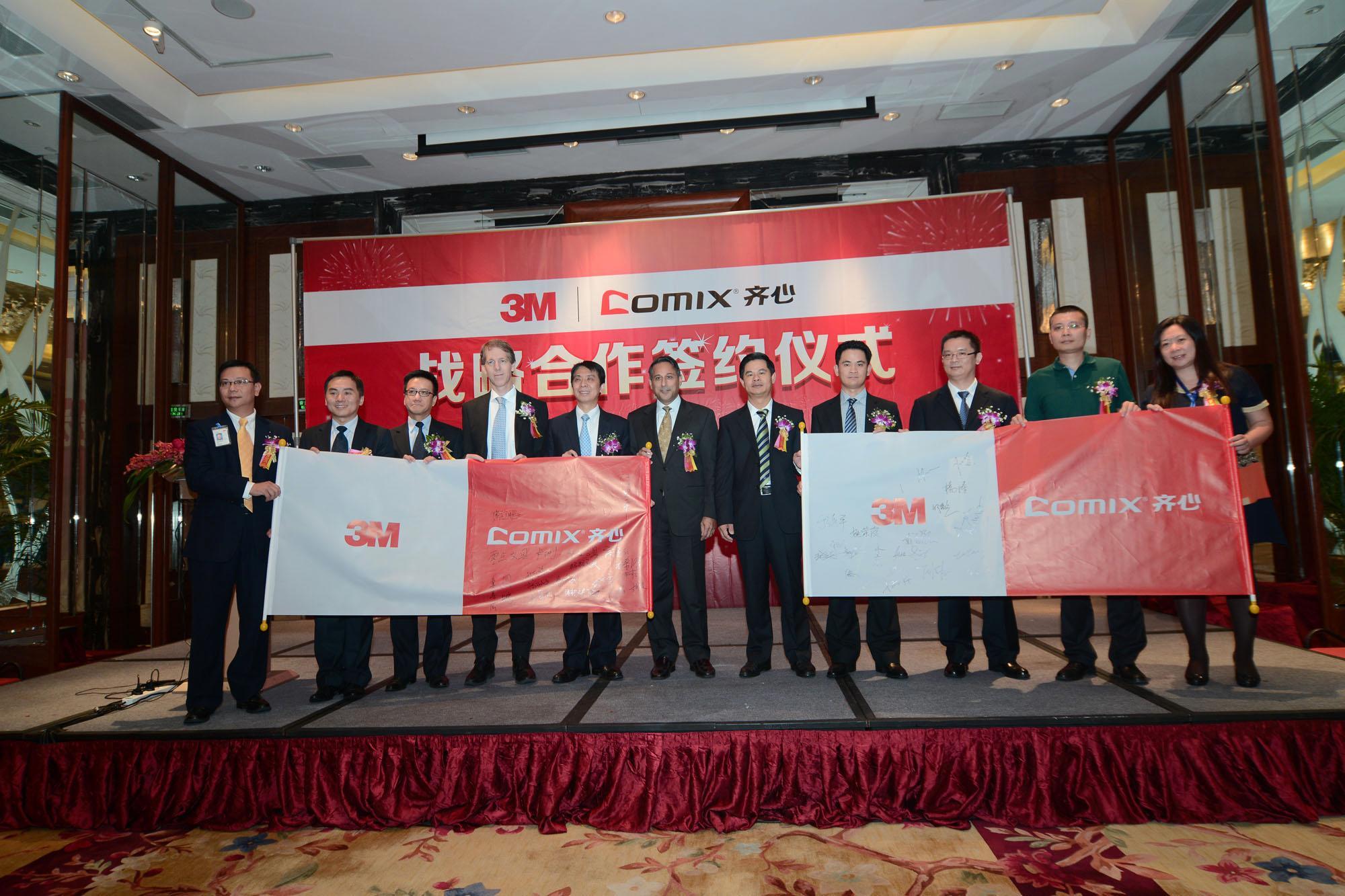 上海2013年10月12日電 /美通社/ -- 今日,多元化創(chuàng)新制造企業(yè)3M公司與國內(nèi)領(lǐng)先辦公用品企業(yè)齊心辦公在深圳簽署戰(zhàn)略合作協(xié)議,雙方將正式在產(chǎn)品、渠道等多個方面展開全方位合作,實現(xiàn)優(yōu)勢互補(bǔ),從而透過更便捷的渠道為國內(nèi)外文儀用品消費(fèi)者提供具有國際水準(zhǔn)的高品質(zhì)文教產(chǎn)品。深圳市委常委、市委統(tǒng)戰(zhàn)部長張思平、3M全球商業(yè)文儀產(chǎn)品業(yè)務(wù)部高級副總裁Jesse G.Singh、齊心文具股份有限公司董事長陳欽鵬及數(shù)百嘉賓出席了簽約儀式,共同見證中國文儀行業(yè)最具標(biāo)桿意義的戰(zhàn)略合作正式啟動。