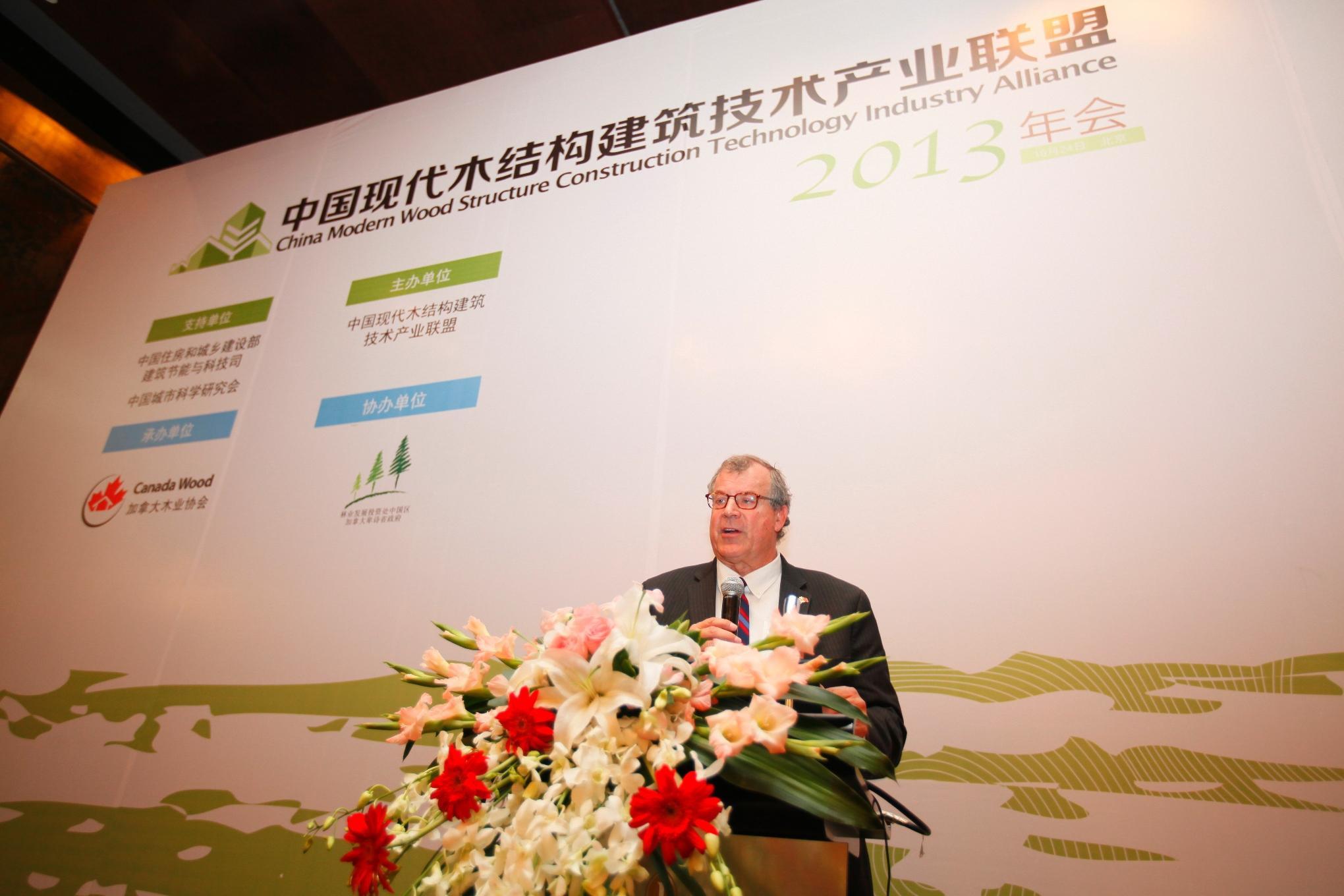 北京2013年10月25日電 /美通社/ -- 由住房城鄉(xiāng)建設部建筑節(jié)能與科技司、中國城市科學研究會和中國現代木結構建筑技術產業(yè)聯盟、加拿大木業(yè)協會、卑詩省林業(yè)廳中國辦事處共同主辦的“中國現代木結構建筑技術產業(yè)聯盟2013年會”于2013 年10月24日在北京北辰洲際酒店隆重召開。住房和城鄉(xiāng)建設部建筑節(jié)能與科技司副司長同時兼任中國現代木結構建筑技術產業(yè)聯盟理事長韓愛興,加拿大卑詩省林業(yè)廳廳長史蒂夫湯姆遜(Steve Thompson),加拿大自然資源部政策經濟與產業(yè)司司長格蘭梅森(Glenn Mason)以及中國綠色建筑委員會主任王有為出席大會并致辭。