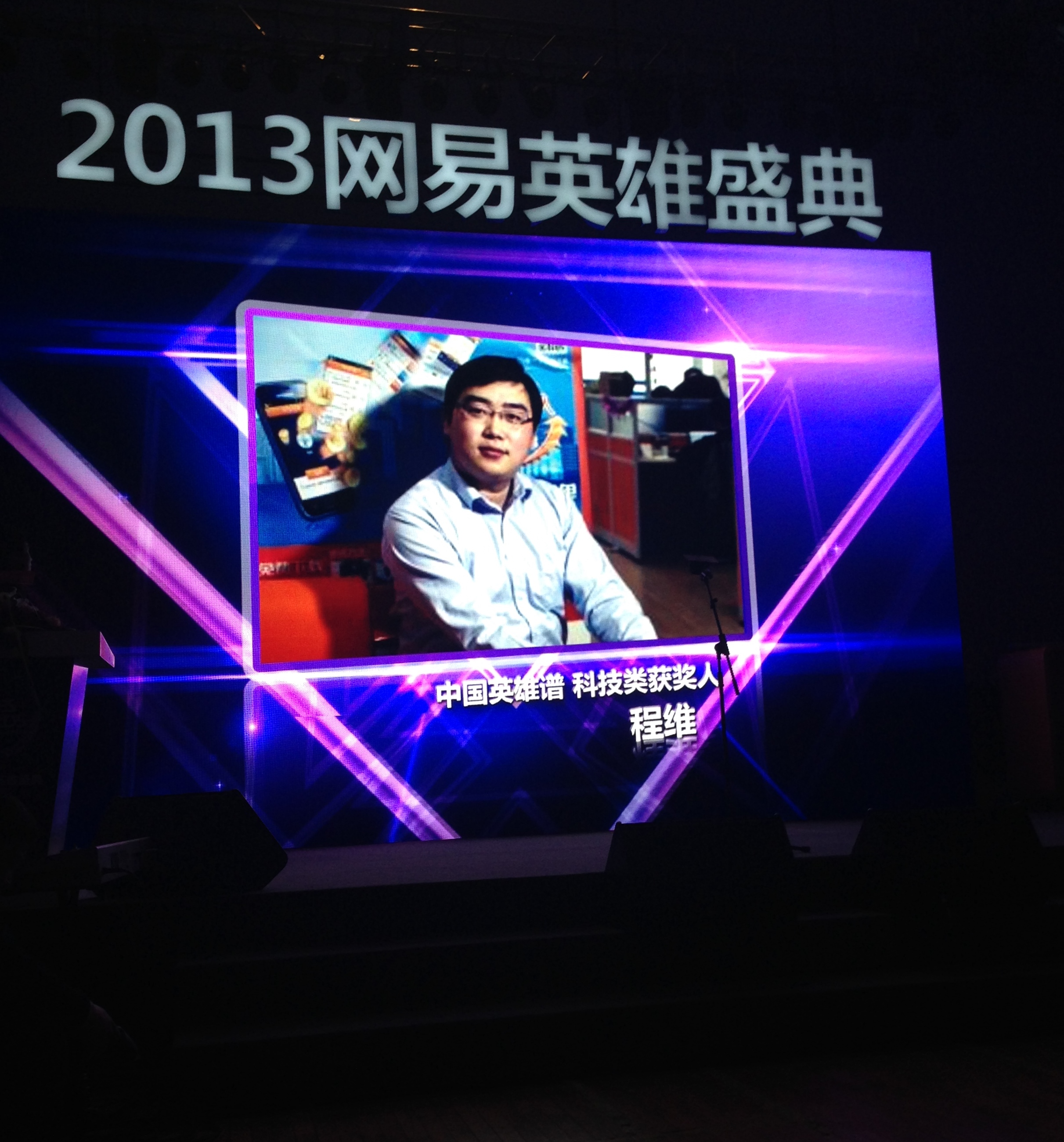 “2013網(wǎng)易英雄盛典”是由網(wǎng)易主辦的大型頒獎(jiǎng)盛典,旨在總結(jié)過(guò)去一年在公益、環(huán)保、體育、女性等不同領(lǐng)域做出卓越貢獻(xiàn)的人,在盛典上發(fā)布了“2013中國(guó)英雄譜”。財(cái)經(jīng)、環(huán)保、新青年、體育、女性、公益、旅游、教育、傳媒、文化、藝術(shù)、法治、科技等13個(gè)領(lǐng)域中的52名候選人歷時(shí)近3個(gè)月的評(píng)選,最終每個(gè)領(lǐng)域有一人脫穎而出,形成“2013中國(guó)英雄譜”,嘀嘀打車(chē)CEO程維最終獲得“科技英雄獎(jiǎng)”,該獎(jiǎng)項(xiàng)其他提名者是:從牛博網(wǎng)到培訓(xùn)學(xué)校,錘子手機(jī)創(chuàng)始人羅永浩、20多年來(lái)潛心研究環(huán)境污染的健康效應(yīng),呼吁關(guān)注PM2.5的志明學(xué)者潘小川、從非典到H7N9,是醫(yī)者更是智者的著名院士終南山。
